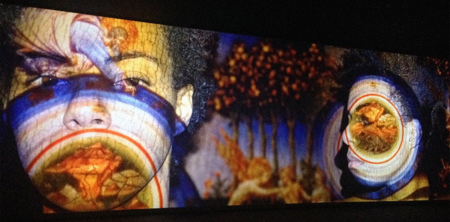 В работе «Расколотый атлас» Тео Эшету смешивает кадры значимых для разных культур исторических событий, портреты и маски, а затем проецирует это на баннер из берлинского этнографического музея. В этом калейдоскопе образов рождается ощущение зыбкости и неустойчивости подвижной культурной среды, приводящей в движение прочно связанные с ней идентичности. Сам художник отмечает: «Культурные идентичности нельзя зафиксировать и определить. Они находятся в постоянном движении, создаются и формируются политическими проекциями, возводятся и разрушаются историческими событиями, колеблются в зависимости от перемещения культурных объектов и миграции населения».