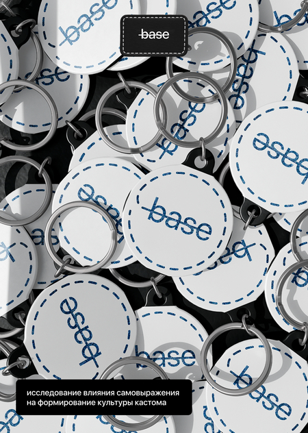 Концепция бренда строится на идее уникальности через трансформацию базового элемента. В её основе лежит отказ от стандартного шаблона, традиционной повторяемости и безликой унификации. Каждый элемент создаётся через наложение, изменение и персонализацию, что превращает обычный, на первый взгляд, объект в носитель индивидуальной истории и характера. Таким образом, «base» становится не просто стартовой точкой, а платформой для развития и творческого выражения.