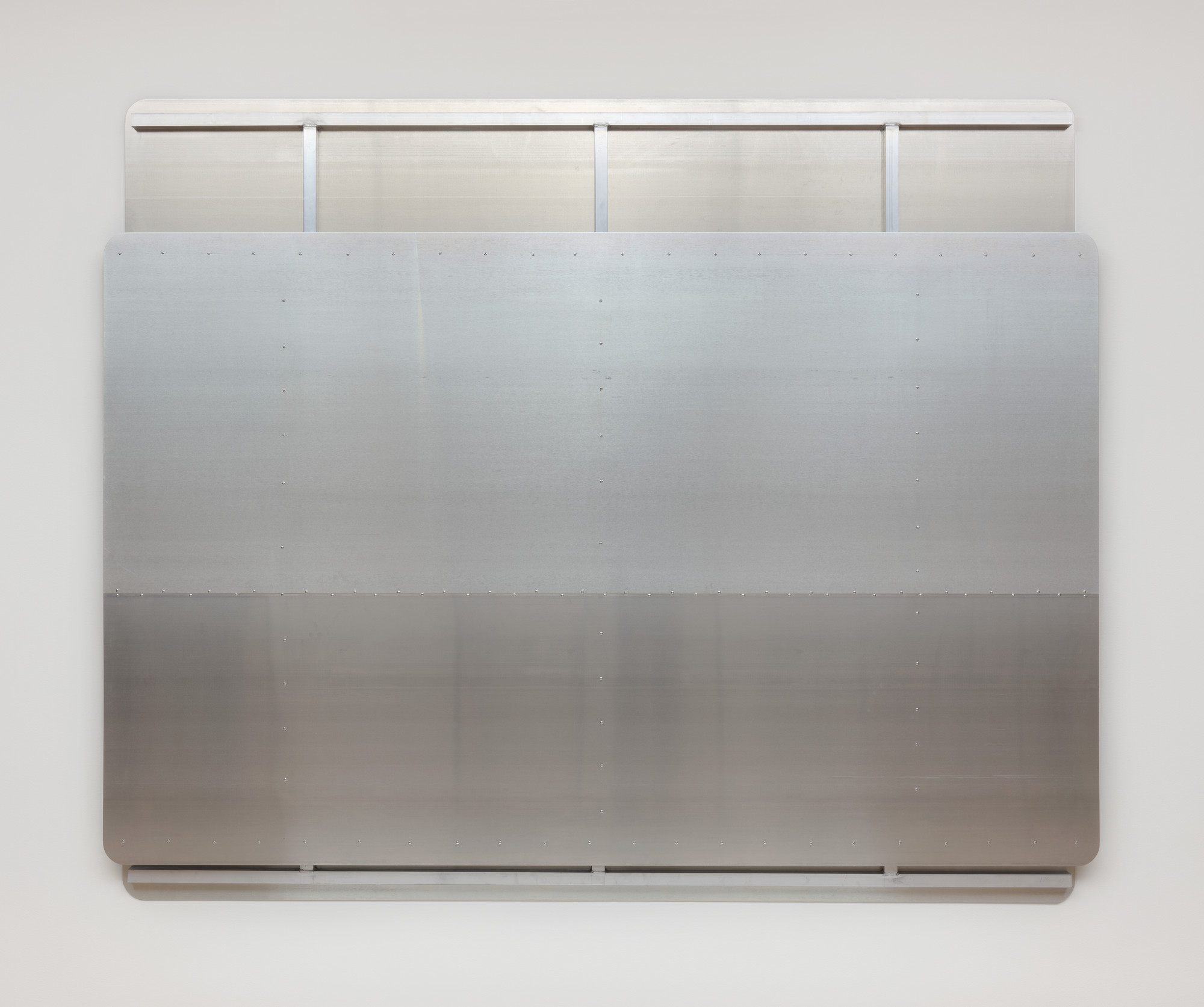 Парк МакАртур, «Мягко, эффективно», 2017, алюминий, 274,3×335,3×3,8 см Парк МакАртур, «Мягко, эффективно», 2017, алюминий, 181,93×289.56×3.81 см, коллекция музея AKG в Буффало