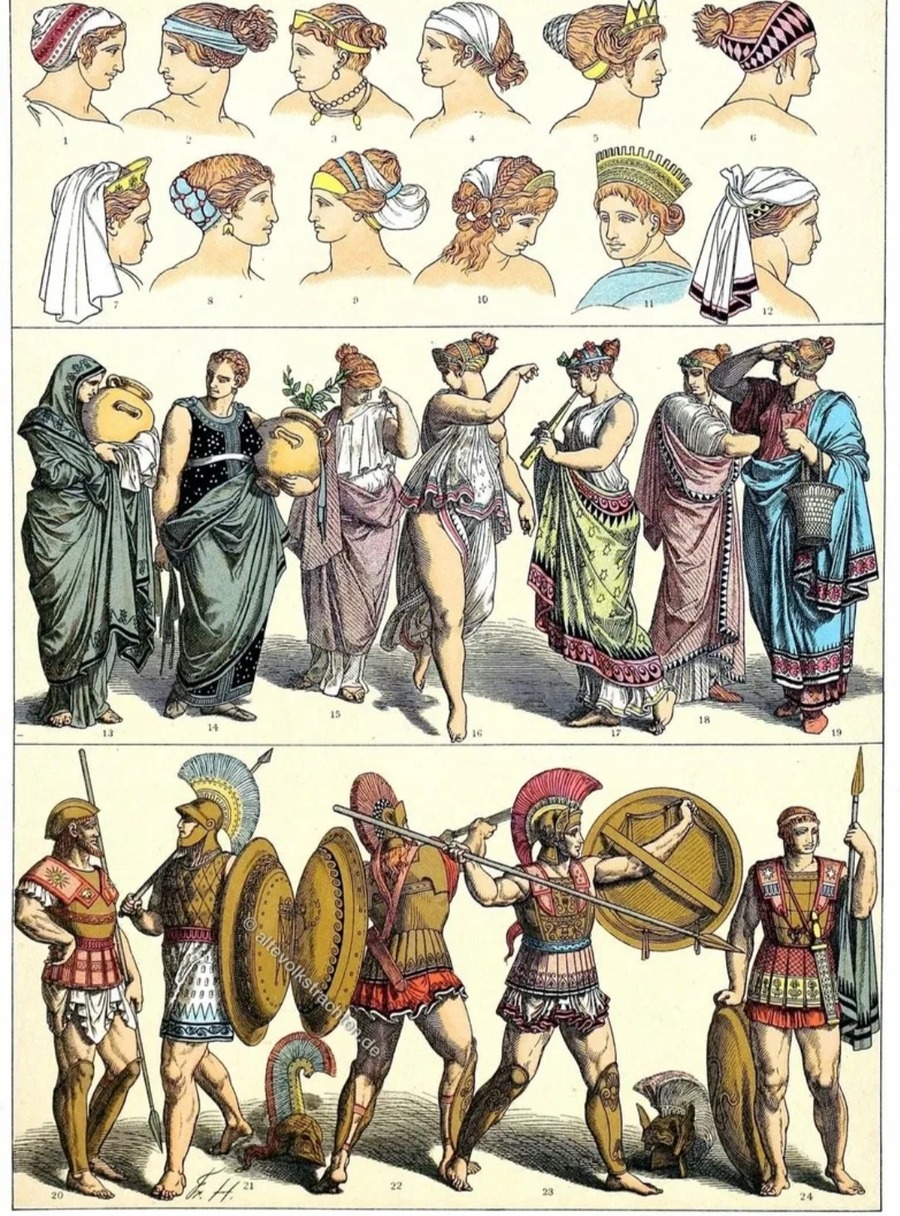 Древняя Греция. В Греции кастомизация проявлялась через: - индивидуальные узоры на керамике, отражающие личный стиль мастера - персонализированное оружие и доспехи с изображениями героев или символов - декоративные элементы одежды, подчеркнувшие принадлежность к роду или полису