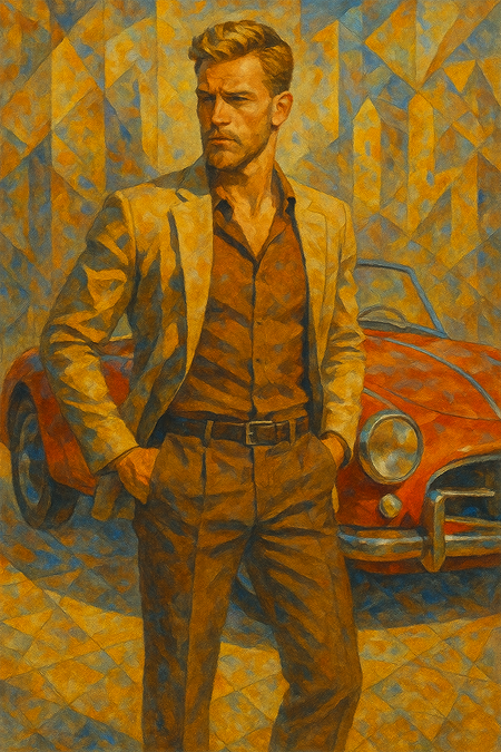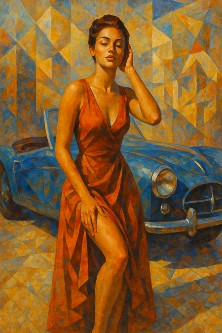 Я задумала эксперимент: перенести уникальный стиль Георгия Курасова — современного художника, известного своей графичной, почти архитектурной эстетикой, динамичными композициями и игрой с перспективой — в мир цифровой визуализации. Моей целью было создать серию изображений, где современные города и их обитатели переосмыслены через призму его авторского стиля — с его фирменными геометричными линиями, контрастными цветовыми пятнами и ощущением «застывшего движения».
