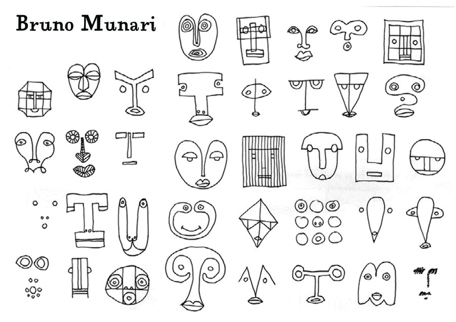 Портреты, созданные Бруно Мунари, отражают абстрактный и концептуальный взгляд на человеческое лицо. Художник использует геометрические формы, текстуры и линии, чтобы передать характер и выразительность, отходя от реалистичного изображения. Работы подчеркивают важность визуальной композиции и изменчивости восприятия.