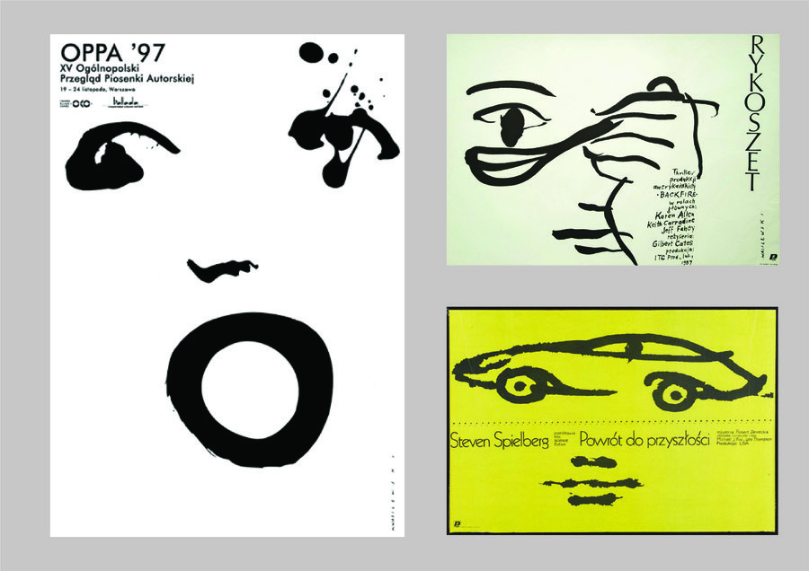 Каждый из этих плакатов демонстрирует характерный стиль польской школы плаката, с использованием символизма, абстракции и минималистичных форм для передачи глубоких концептуальных идей через простые, но мощные визуальные образы.