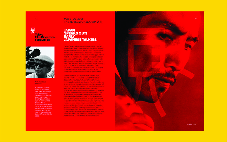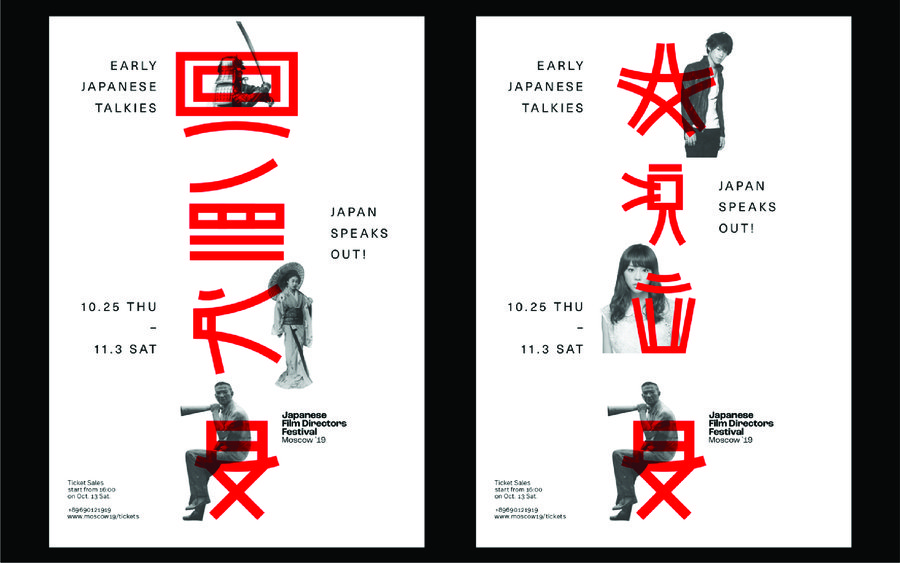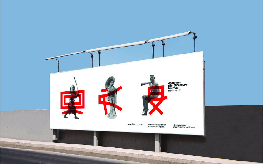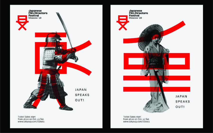 Кейс посвящён айдентике фестиваля японских кинорежиссёров в Москве (2019). Визуальный стиль объединяет элементы японской иконографии и киносимволики: кандзи трансформированы в образы, связанные с кинематографом.