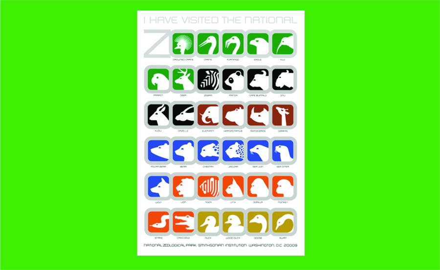 Обратите внимание, как различные виды животных приведены к единому стилю пиктограмм для Национального зоопарка Вашингтона.