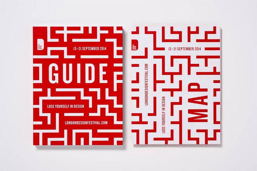 Концепция данного проекта — «Потеряйся в дизайне». Визуальная айдентика основана на графике лабиринта, символизирующего исследование и погружение в мир дизайна. Контрастные красно-белые цвета и модульная типографика создают динамичную и запоминающуюся навигацию для Лондонского фестиваля дизайна 2014.