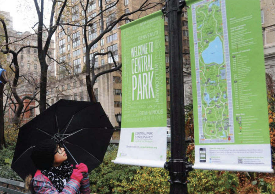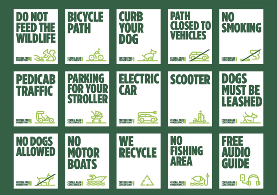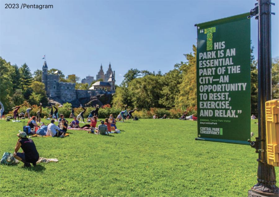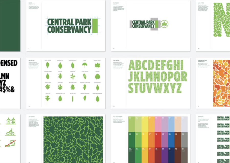 Обновленный фирменный стиль для Central Park Conservancy включает в себя логотип, систему пиктограмм и фирменную графику. Основной задачей было улучшение восприятия и доступности информации о Центральном парке Нью-Йорка. Логотип и система визуальных элементов используют природные оттенки, а также формы листьев в качестве графики. Из них складывается фирменный паттерн. В зависимости от сезона листья меняют цвет. Проект был разработан дизайнерской студией Pentagram.
