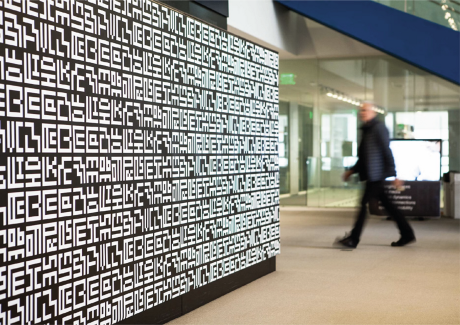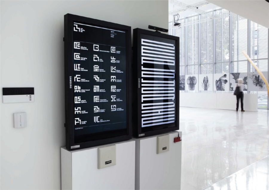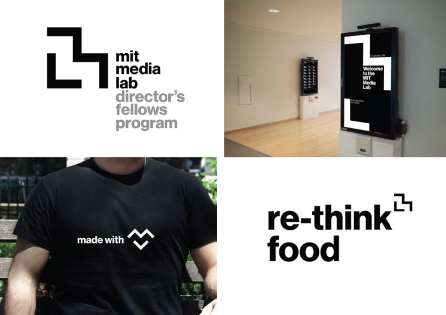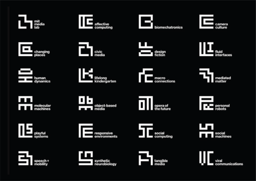 Концепция проекта MIT Media Lab связана с различными направлениями, включая технологические и научные инновации. Несколько десятков вариантов логотипа можно составить по сетке благодаря разным направлениям лучей.