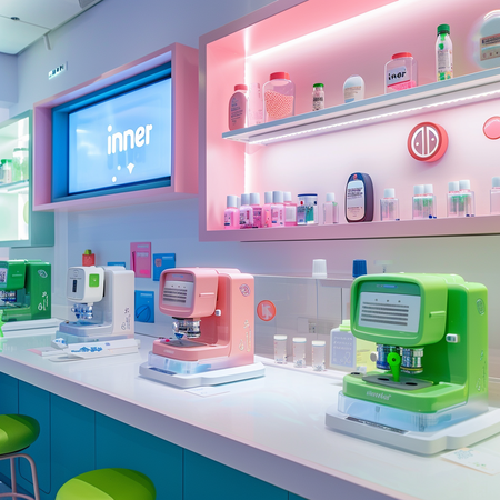 Промпт: minimalistic typographic logotype for mini pocket microscopes «inner» with simple forms of bacteria. Black logo on white background, simple and modern. Large type and small illustration