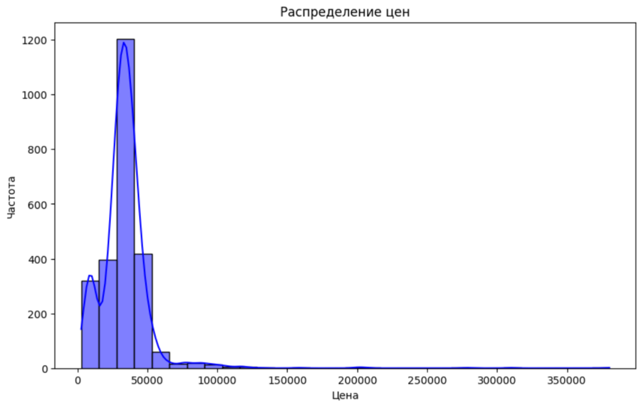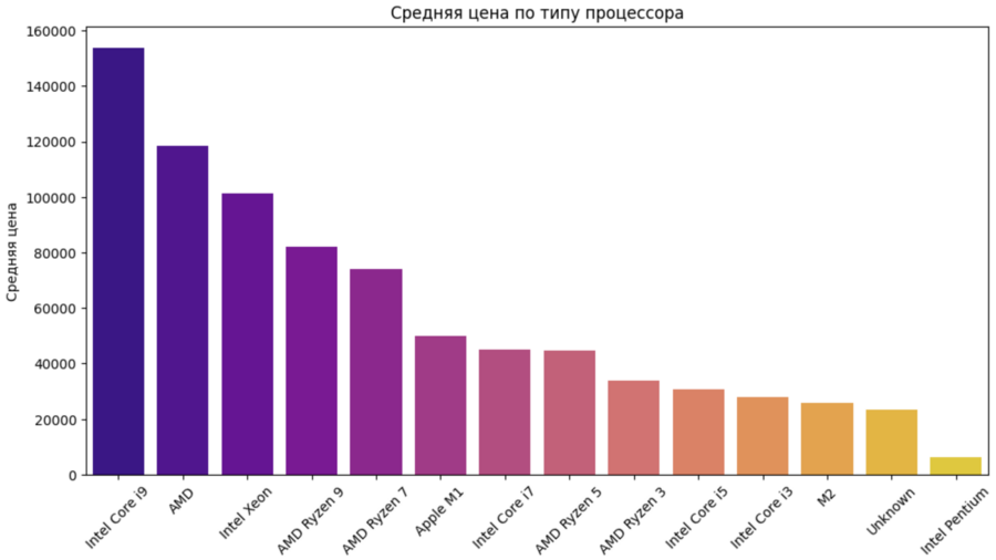 На этой гистрограмме можно заметить, что весь компьютерный ценовой сегмент держится от 0 до 50000, а самым пиком является примерно 40000, что в дальнейшем поможет подкрепить различные выводы по рынку.