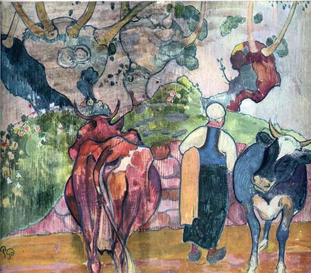 Гоген не раз писал о влиянии, оказанным на него японской гравюрой, моделируемой линиями чистых цветов. Он, как и сейчас Демьяненко, вдохновлялся искусством древних цивилизаций, отличавшемся геометризмом и линейностью.
