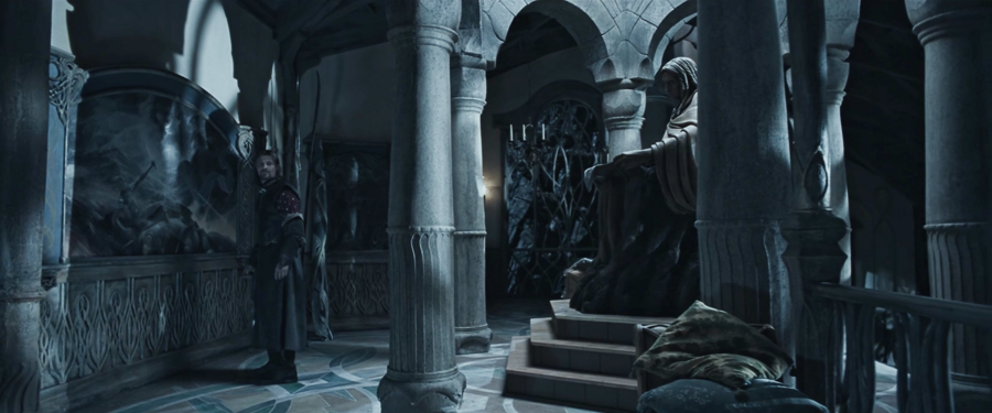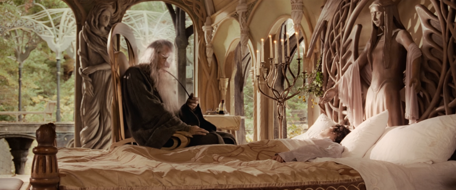 Властелин колец: Братство Кольца. Новая Зеландия, США, 2001, Питер Джексон. (Природно изогнутые подсвечники, статуи и изголовье кровати).