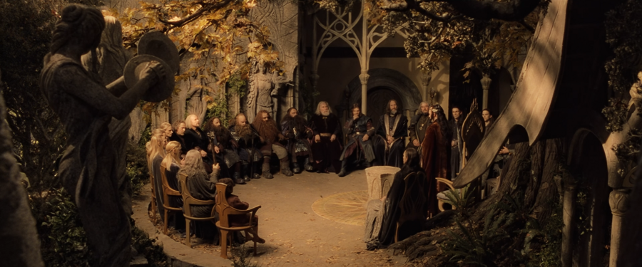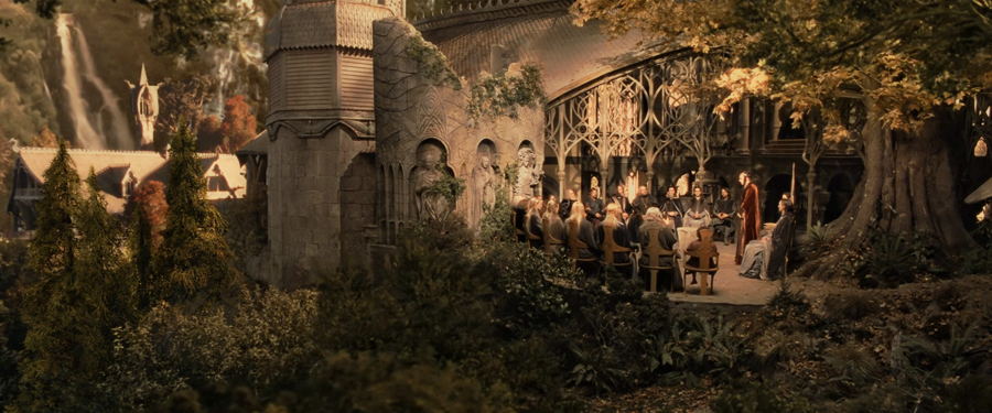 Властелин колец: Братство Кольца. Новая Зеландия, США, 2001, Питер Джексон. (Свод потолка тоже украшен орнаментами, которые плавно выходят из основания арок).