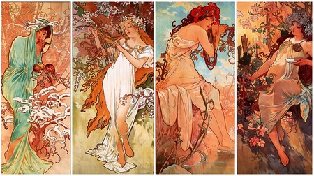 А. Муха, «Времена года», серия 1896, «Драгоценные камни», серия 1900