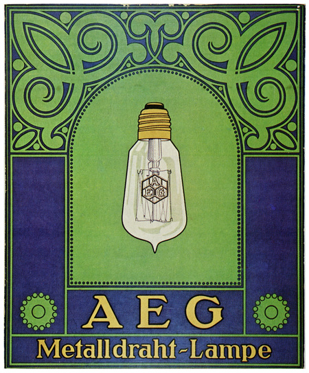 Петер Беренс, плакат «Электрические лампы AEG», 1910 г., «Поцелуй», 1898 г.