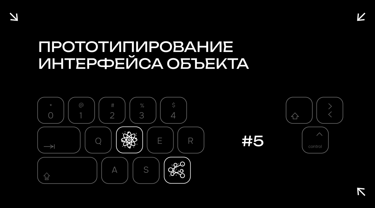 В теме № 5 «Прототипирование интерфейса объекта» вы будете прототипировать архитектуру интерфейса объекта предметного и промышленного дизайна в Miro на основе знаний об атомарном дизайне и его элементах интерфейса объекта. Изучите 10 основных принципов разработки интерфейса и познакомитесь с инструментами прототипирования.
