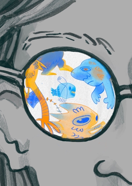 Для обладателей плохого зрения очки — важнейшая вещь в восприятии мира вокруг. Главная героиня, выйдя на прогулку, в гуще толпы теряет драгоценные стеклышки.
