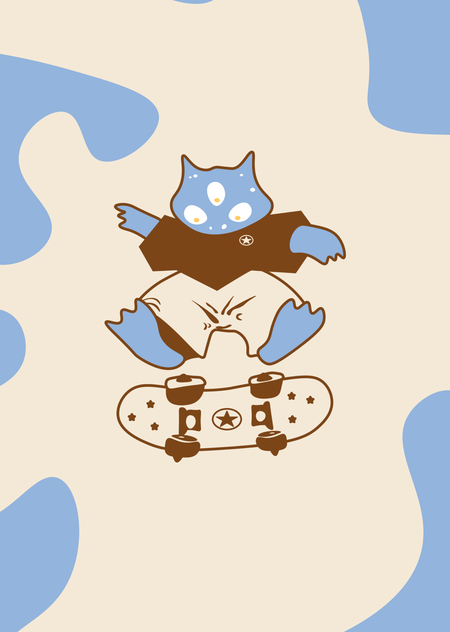 Он не просто пришелец. Это троеглазый тинейджер с дикой тягой к веселью, бургерам и уличной культуре. Он живёт на перекрёстке космоса и субкультуры: скейт в одной лапе, колонка в другой, а в голове — только музыка, фастфуд и свобода.