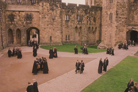 В первых двух частях саги, «Философском камне» и «Тайной комнате», часть сцен была снята в замке Алник. К примеру, сцены, где ученики-первокурсники учатся летать на метлах, были сняты в его дворе.