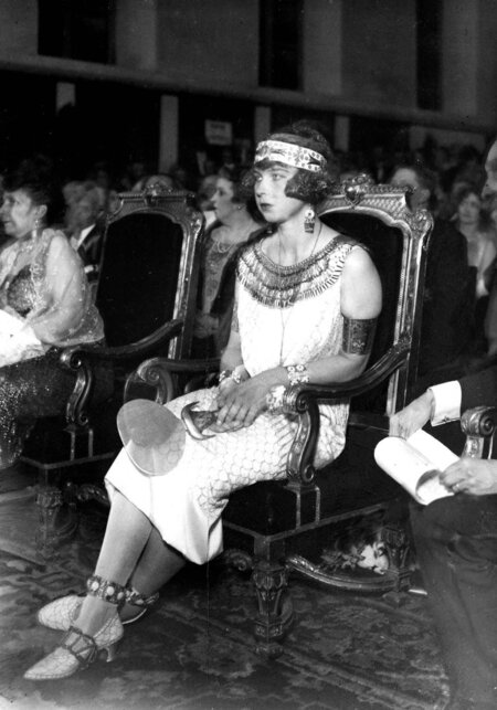Слева: египетские мотивы в вечерней моде, 1920-е годы // Справа: Нина Пэйн в египетском образе, 1928 год