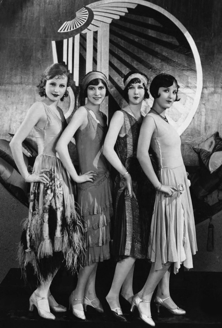 Корсет пропадает, но не полностью. Пока еще остается прослойка нижнего белья, чтобы поддерживать чулки и, в отличие от корсета, сгладить фигуру, сделать ее по новым стандартам красоты тонкой и невыдающейся. Комбинация нижнего белья впервые начинает декорироваться как полноценный элемент гардероба.