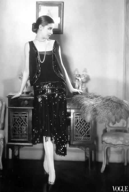 Слева: Мэрион Морхаус в черном платье с блестками от Chanel, Vogue 1926 // Справа: Ли Миллер в платье Chanel, 1928 год