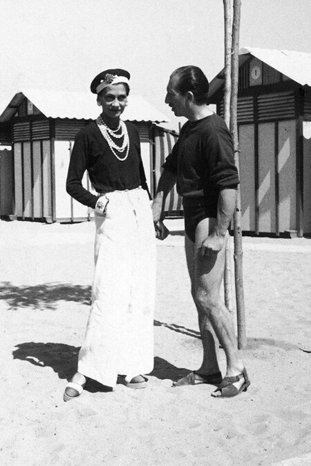 Ближе к 1930-м годам и в дальнейшем Коко Шанель отходит от андрогинного образа. В повседневной жизни она предпочитала носить брюки. Днем Коко предпочитала укороченные штаны, а вечером надевала широкие и длинные. Брюки в 20-е массово женщины не носили, но их уже можно было увидеть на улицах. Брюки все еще использовались чаще как часть спортивной одежды.