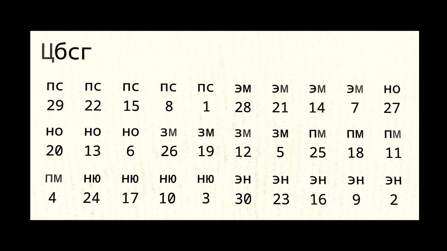карточки двусторонние: на лицевой стороне находится зашифрованная календарная сетка, на оборотной — описание шифра и ключ к расшифровке