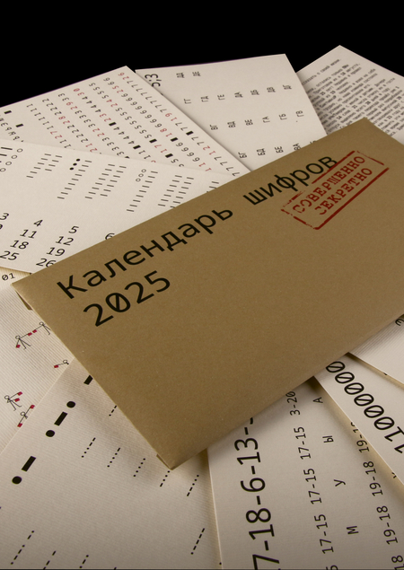 Календарь посвящён различным техникам шифрования. Каждый месяц выполнен в виде карточки с шифром, который предстоит разгадать, а на обратной стороне находится информация о шифре и ключ к расшифровке.
