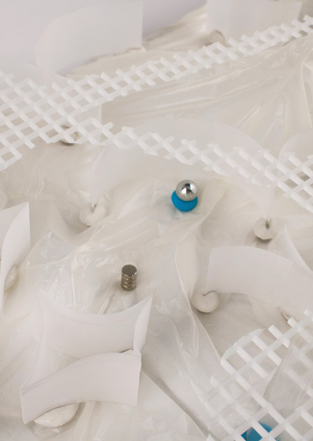 Идея выставки заключается в глубоком погружении в центральную тему творчества Ханса Арпа — метаморфозу. Чтобы максимально раскрыть этот мотив, я решила использовать пол по принципу «airman», где воздух наполняет ткань, создавая динамичное пространство. Люди, проходящие по этому полу, ощущают, как он сжимается под ногами в одном месте и раздувается в другом, становясь частью непрерывного процесса трансформации.