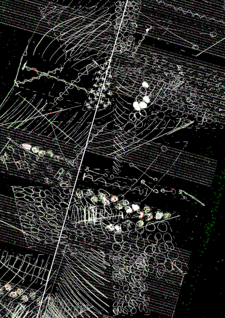 «Пандемониум» отражает эту идею в трёх разных формах. Физическая инсталляция — три натянутых троса с хаотично закреплёнными предметами — передаёт материальное ощущение беспорядка. Графическая партитура, созданная случайным образом и доработанная цифровыми эффектами, переносит ту же концепцию в визуальный формат. Завершает триаду звуковой трек, основанный на ручных импровизациях и дополненный электронными эффектами, подчеркивая многослойность и непредсказуемость хаоса. Вместе они демонстрируют цикличную природу творческого беспорядка и его роль в самореализации.