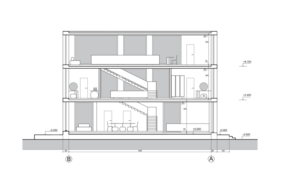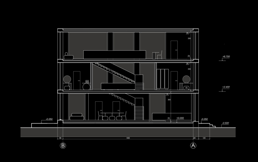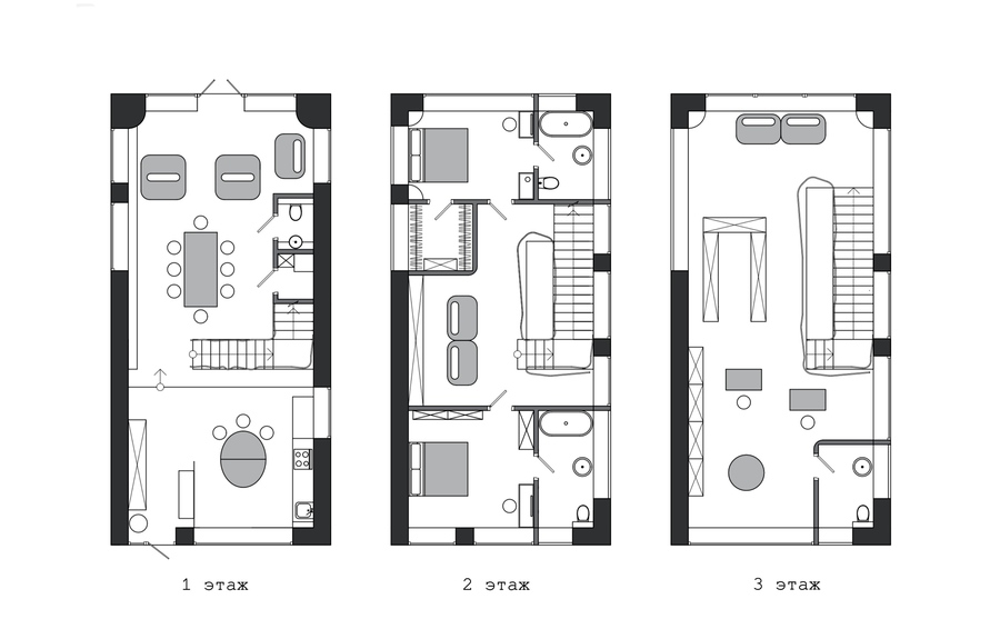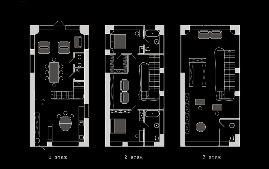 Лестница выступает смысловым и композиционным ядром таунхауса: как общечеловеческий символ развития, она характеризует дом как микрокосм, где основной закон — эволюция мысли и материи.