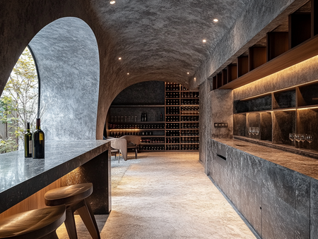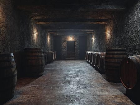 Промпт: a wine keg storage cellar in dark brutalism style --ar 4:3