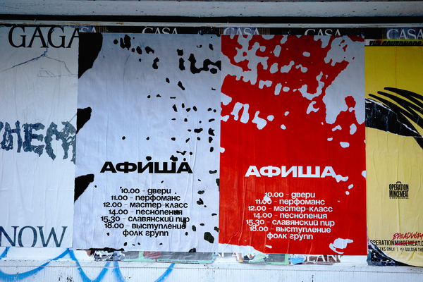 Основополагающие принципы стиля — персонажи-маскоты, линогравюра, текстуры и сложный красный цвет.