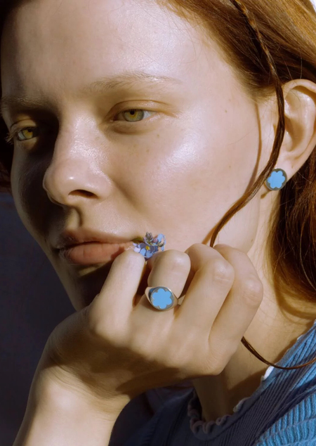 Бестселлер бренда Moonswoon — украшение в виде цветка незабудки. Основательница говорит, что это современная интерпретация каменного цветка из сказов Бажова.