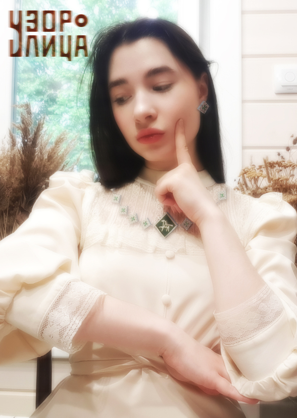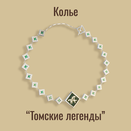 The collection of «Lady Tomsk» is dedicated to the city of Tomsk and its rich historical heritage. This collection is inspired by the culture of tribes that once lived in Tomsk. The inspiration was based on the creative achievements of the Kulay and Molchanov cultures. Articles created by Kulay culture artists were discovered under Mount Kulayka in the village of the Chaina region of Tomsk and are petromorphic stories in bronze. The objects of the Molčanov culture were found on the Ostyak Mount and include vessels with geometric patterns. It is believed that members of this culture have played an important role in the formation of the Kulay culture. The color palette of the collection and the main element of the products — the horse — are symbolic for Tomsk. The horse has been painted on the city’s coat of arms since the 18th century, and the emerald color has become classic for Tomsk, as it is in this color that the roofs of houses have historically been painted.