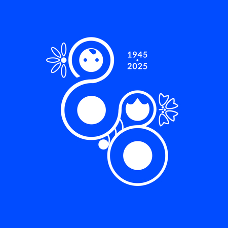 Логотип содержит культурные образы России и Доминиканы, отображающие историю стран и богатство культуры. В основе композиции логотипа — традиционный узор, который соединяет в один силуэт главные образы: неваляшку, как символ России, и куклу Лиме — символ Доминиканы. Силуэты кукол образуют число 80 — по годам празднования юбилея. Как символы стран на логотипе изображены национальные цветы государств: Россия — ромашка. Доминиканская Республика — роза Байяибе. Логотип содержит плавные округлые элементы. Круг — символ соединения и объединения российско-доминиканских отношений.