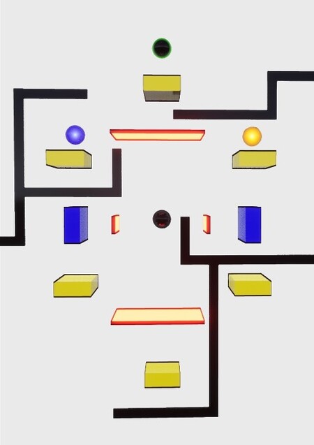 Если шарик падает или натыкается на красную преграду, вы возвращаетесь в начало секции.