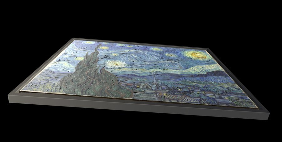 На изображениях представлены примеры выразительной работы с фактурой и текстурой. В первом случае — насыщенный узор черепов в духе Такаси Мураками сочетается с чистыми белыми формами, создавая контраст между плоской графикой и визуальной перегрузкой. Второе изображение — рельефная поверхность «Звёздной ночи» Ван Гога, подчёркивающая живописную фактуру мазков. В третьем — плотный ритм органических элементов и линий Жана Дюбюффе, формирующий ощущение тактильной насыщенности поверхности.
