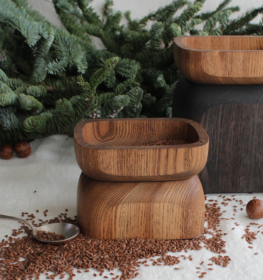 Предметы изготавливаются из массива ясеня и обрабатываются маслом для деревянной посуды. Также используется переработанное пищевое стекло. Тут можно побольше текста про осознанность, бережное отношение к природе… текста чтобы побольше было