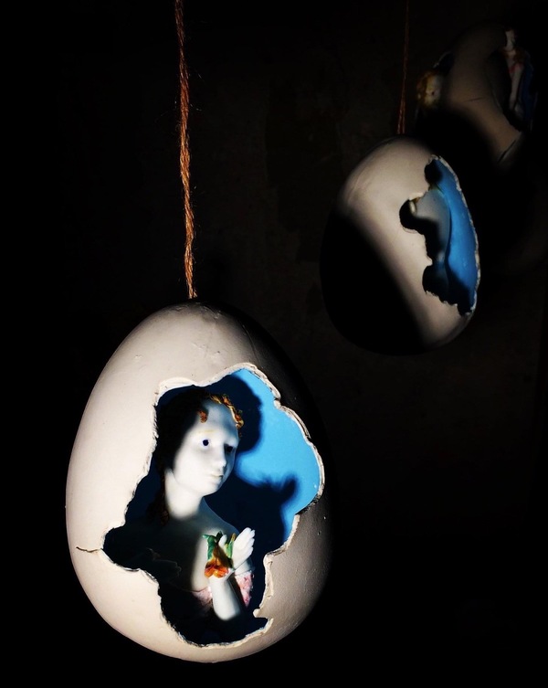 Второй зал наверху, словно на «чердаке». Здесь в произведениях были отражены не только страхи, но и способы его преодоления.