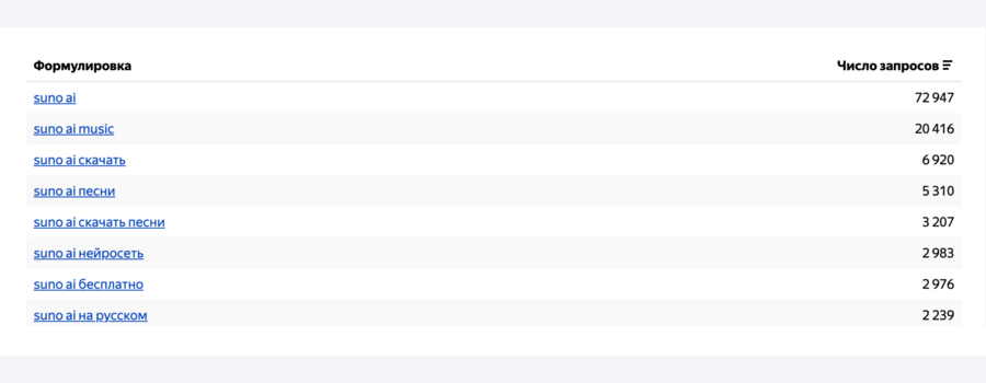 По итогам просмотра запросов я пришел к выводу что Клипы более актуальная тема чем Suno AI. Для меня это стало удивительным поскольку я ожидал что нейросетевые треки будут отличным решением для продвижения. Но как оказалось, обсуждение популярных клипов это самое то, что нужно если отталкиваться по запроса. Потому я решил продвигать статью через тему популярных клипов