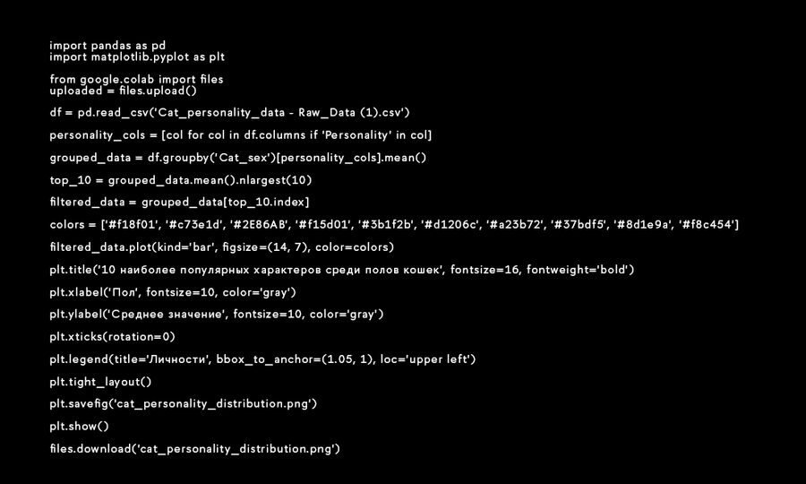 Основными цветами для своих графиков я решила выбрать: #f18f01, #c73e1d, #2E86AB и #a23b72. Мне показалось, что именно они способны отразить игривость и хитрость братьев наших меньших.