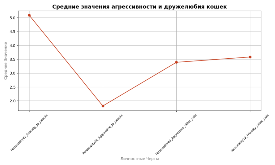 И на наше всеобщее счастье график показал, что больше всего кошек, проявляющих дружелюбие, как по отношению к людям, так и по отношению к своим собратьям.