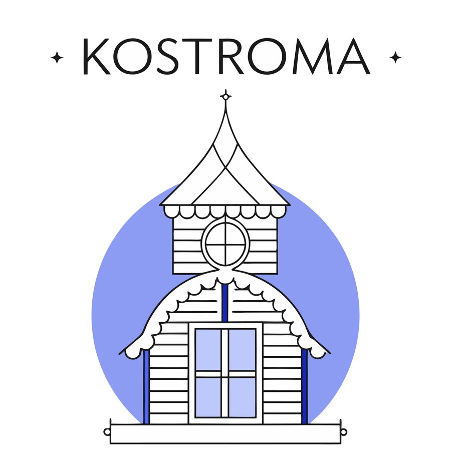 ПРОМТ: create several logos. Use silhouettes of traditional wooden houses, carved patterns characteristic of Kostroma platbands, and soft natural shades (wood, linen, shades of the Volga River). Choose fonts that are associated with warmth and history, for example, with elements of Old Slavonic calligraphy.
