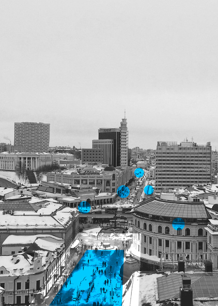 Tele-зоны — это прямоугольные или квадратные зоны, интегрированные в городскую среду и обустроенные так, что человек точно сможет безопасно выполнить в их пределах челлендж — безопасно передвигаться по улице, не отрываясь от смартфона с интернетом, сколь угодно долгое время.