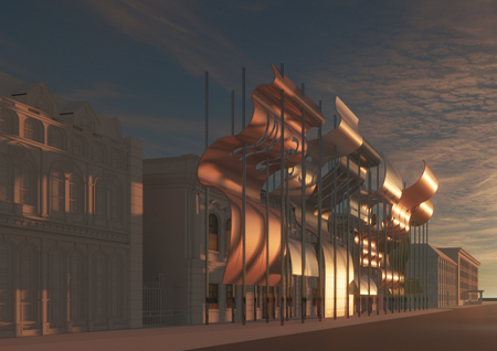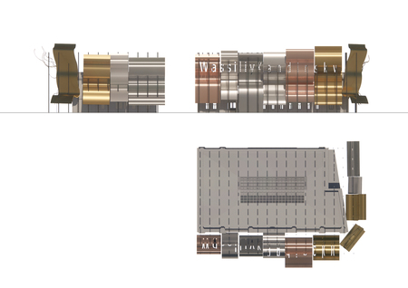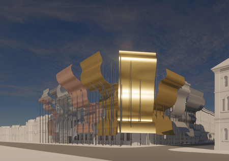 «Волны», формирующие фасад, состоят из разных металлов, каждый из которых воплощает свойства одного из оттенков цветового круга.