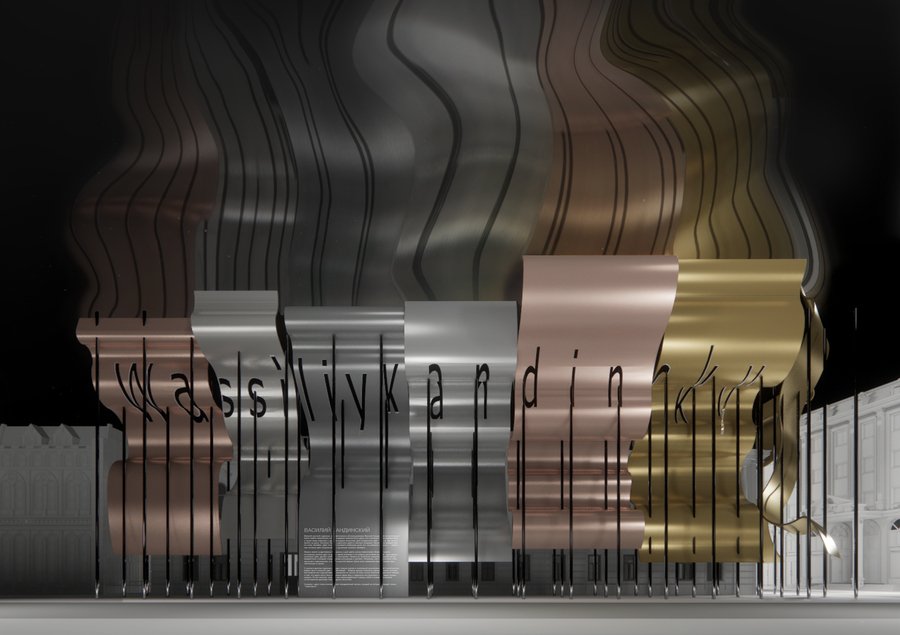 Работая в сфере теории искусства, Василий Кандинский наделял цвета определёнными смыслами, связывал оттенки со звуками музыкальных инструментов. Временная архитектурная композиция, опоясывающая здание РАХа и сопровождающая выставку картин художника, продолжает линию сопоставления цвета и окружающих нас явлений.