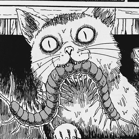 Мне показалось, что данное задание это отличный повод продолжить этот проект, дополнив его сгенерированными изображениями. Для обучения модели я собрала наиболее выразительные работы Дзюндзи Ито, которые наглядно демонстрируют стиль рисования и особенности сюжетов. Датасет состоит из 77 изображений.