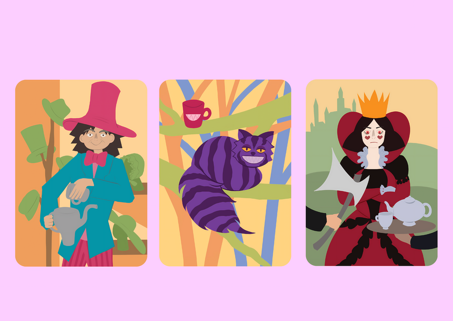 Безумное чаепитие — это настольная игра, в течение которой игрокам предстоит пересаживаться с места на место вокруг стола, пить чай самим и мешать пить его другим. Игра состоит из игрового поля в виде стола, игровых карт, включающих в себя карты персонажей оригинального произведения и карты действий, и фишек. Задача игроков — выпить как можно больше чая.